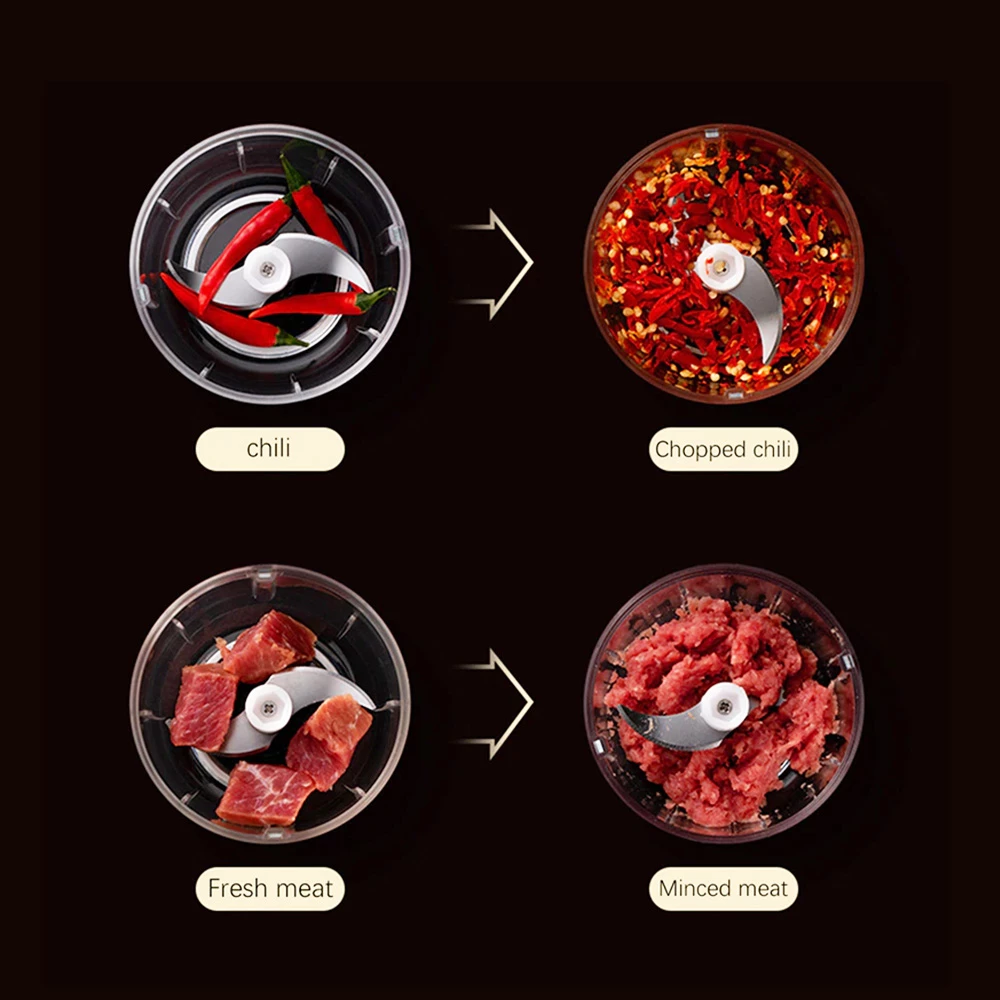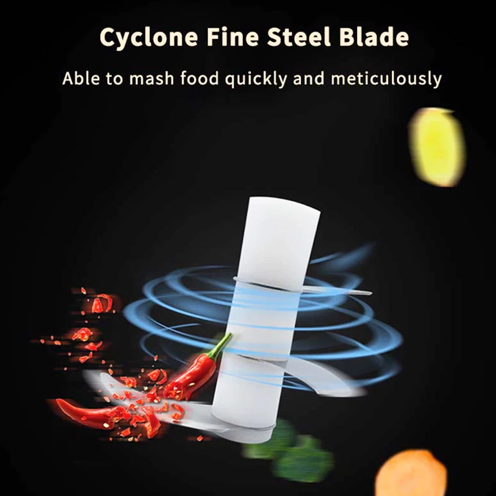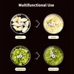4. Quick Chop: The sharp blade of the garlic chopper can quickly chop garlic, spices, nuts, vegetables, meat, ice cubes, etc. It is very suitable for small foods