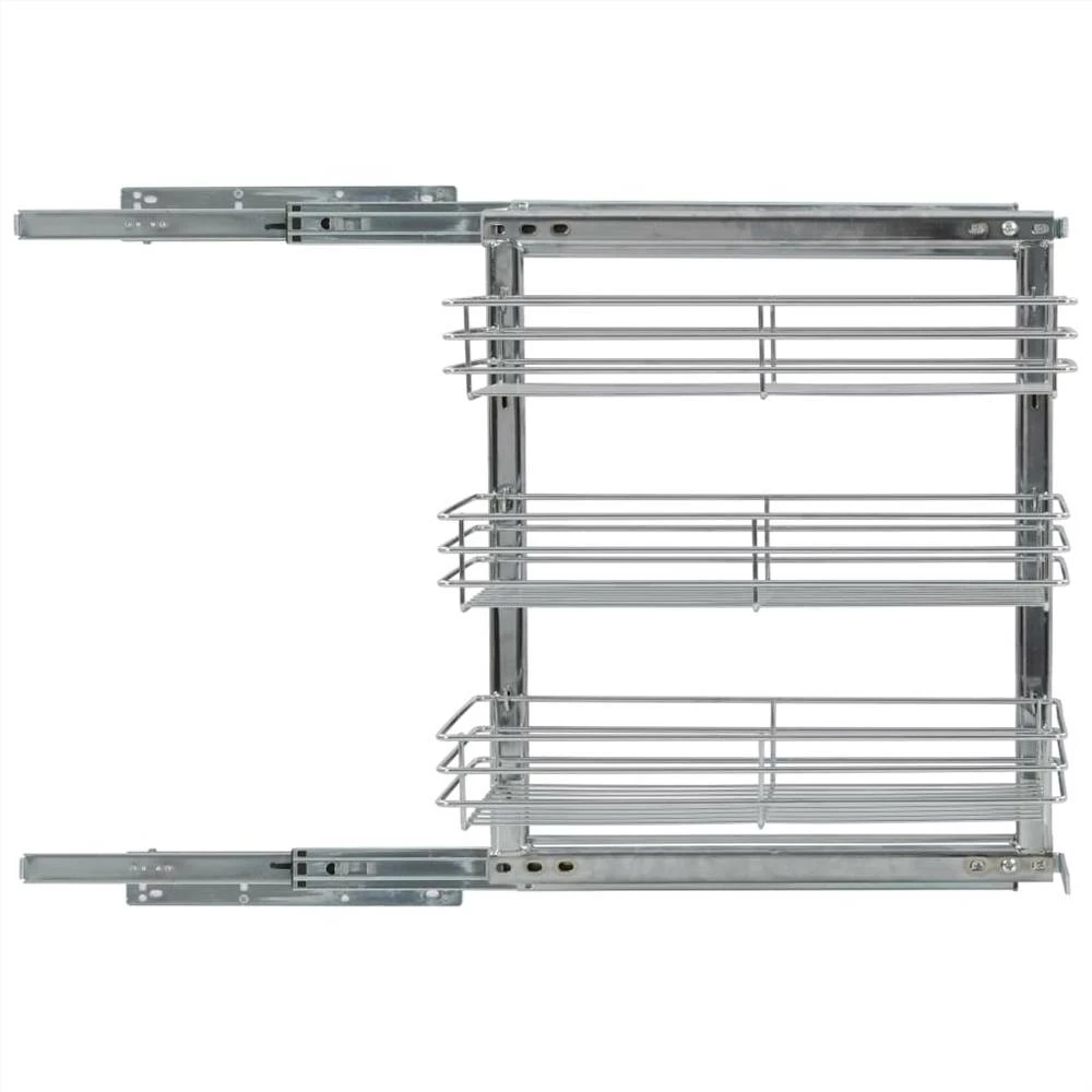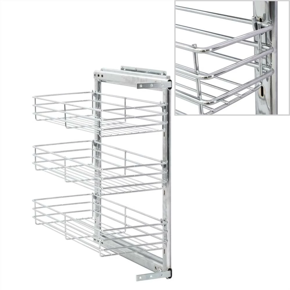 Our pull-out wire basket is easy to install into your kitchen cupboard with the included mounting accessories. Equipped with 3 shelves, this wire basket presents a simple yet practical solution to optimise the storage space of your kitchen cupboard. Made of silver electroplated wire, this kitchen storage basket exudes a clean and modern look and is exceedingly durable. Additionally, the included sliding runners allow you to pull out or push in the wire basket smoothly and quietly.