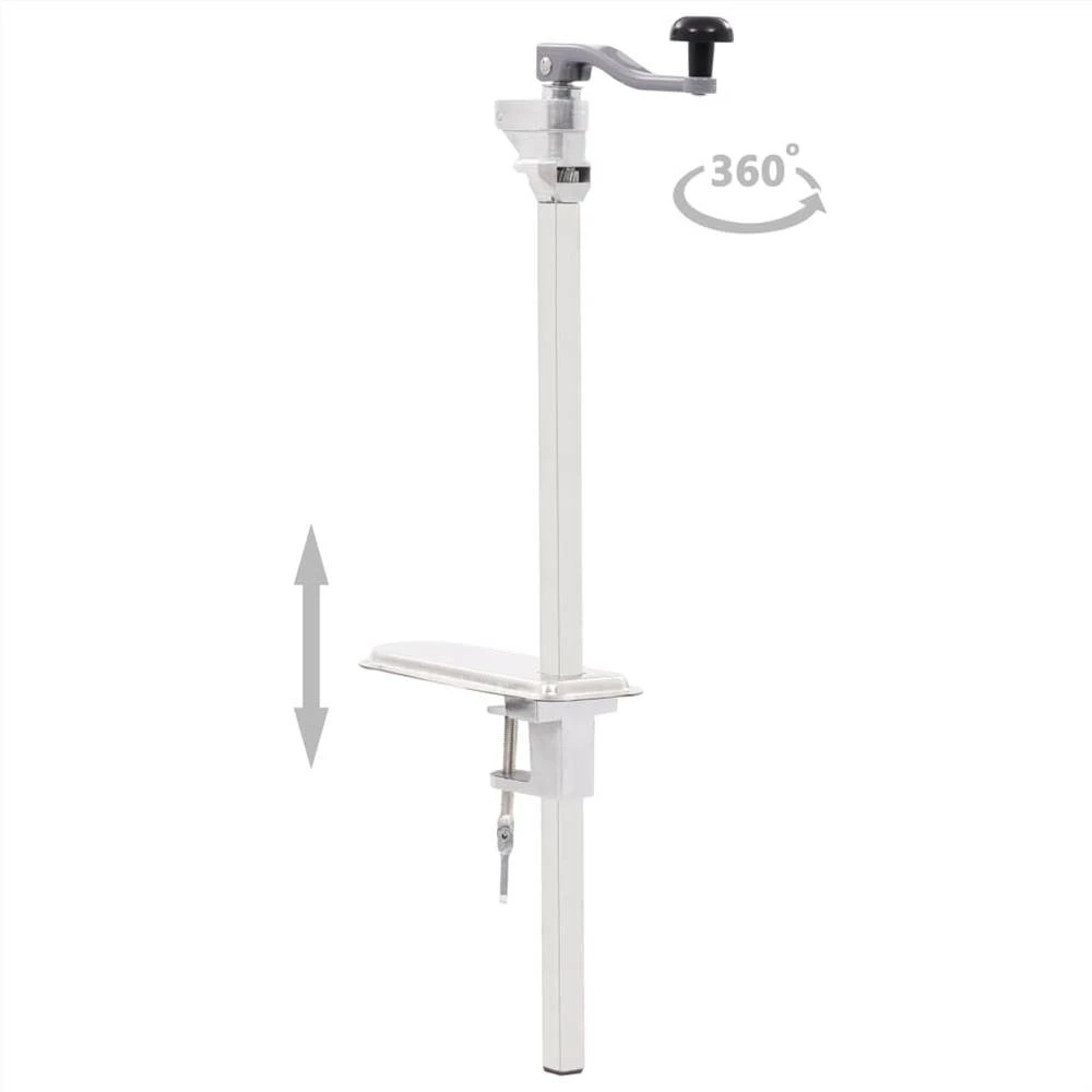 This professional can opener is an all-round nifty kitchen gadget that can effortlessly and quickly open canned food cans. Made of aluminum and strong stainless steel, the can opener is exceeding stable and durable, making it suitable for both home and professional use, including hotels, restaurants, schools, events and etc. With the included fixing clamp, it can be easily attached to the table or worktop and help open various cans of up to 55 cm high quickly and easily. The 360-degree rotatable handle provides maximum flexibility to meet different needs.
