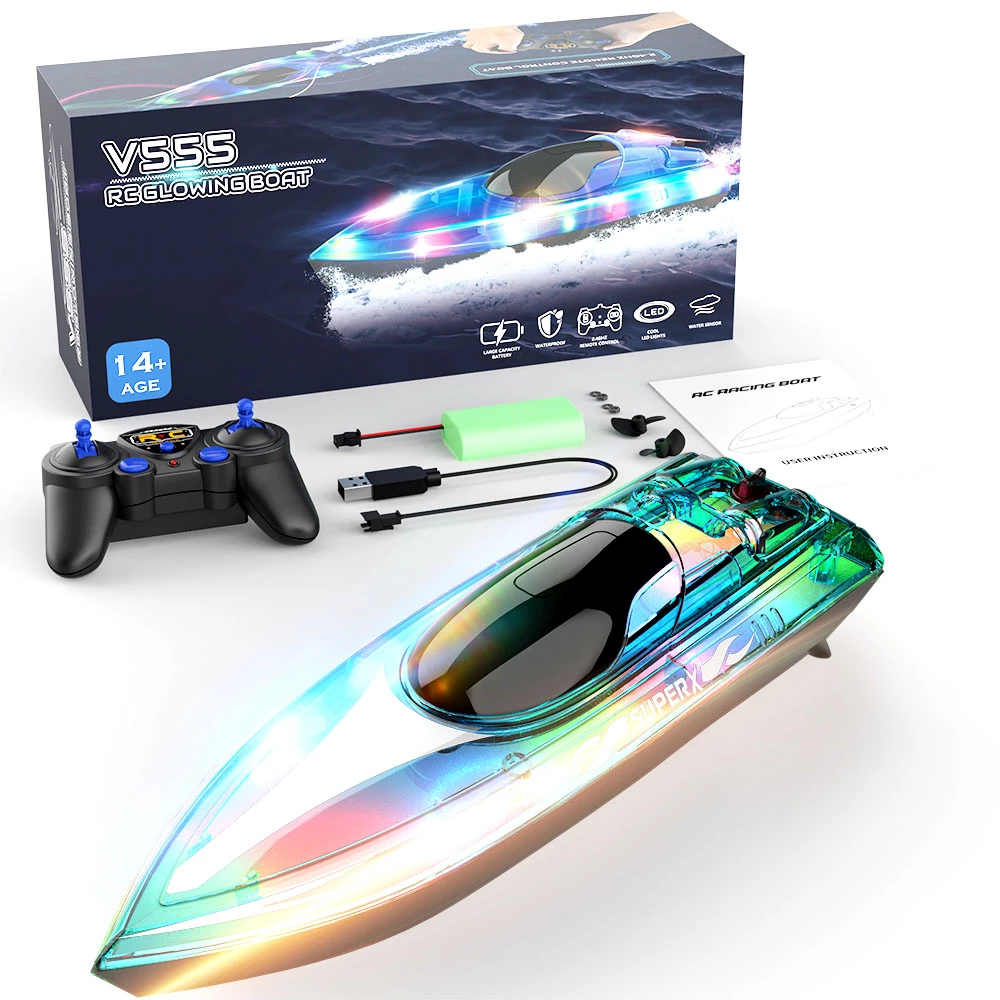 Flytec V555 2.4GHz Racing RC Boats 15KM/H With Transparent Cover And Bright LED Light Effect – Green Two Batteries