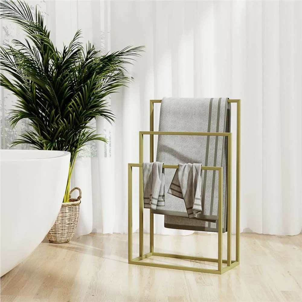 Maximise the space in your bathroom while adding stylish looks with this freestanding towel rack! Premium material: The iron frame of the towel holder ensures sturdiness and stability.Storage master: The standing towel rack, featuring 3 tiers, provides ample space for hanging towels to help keep your bathroom clutter free.Multifunctional rack: The bathroom storage rack can also be used as a drying shelf, accessory organiser, etc.