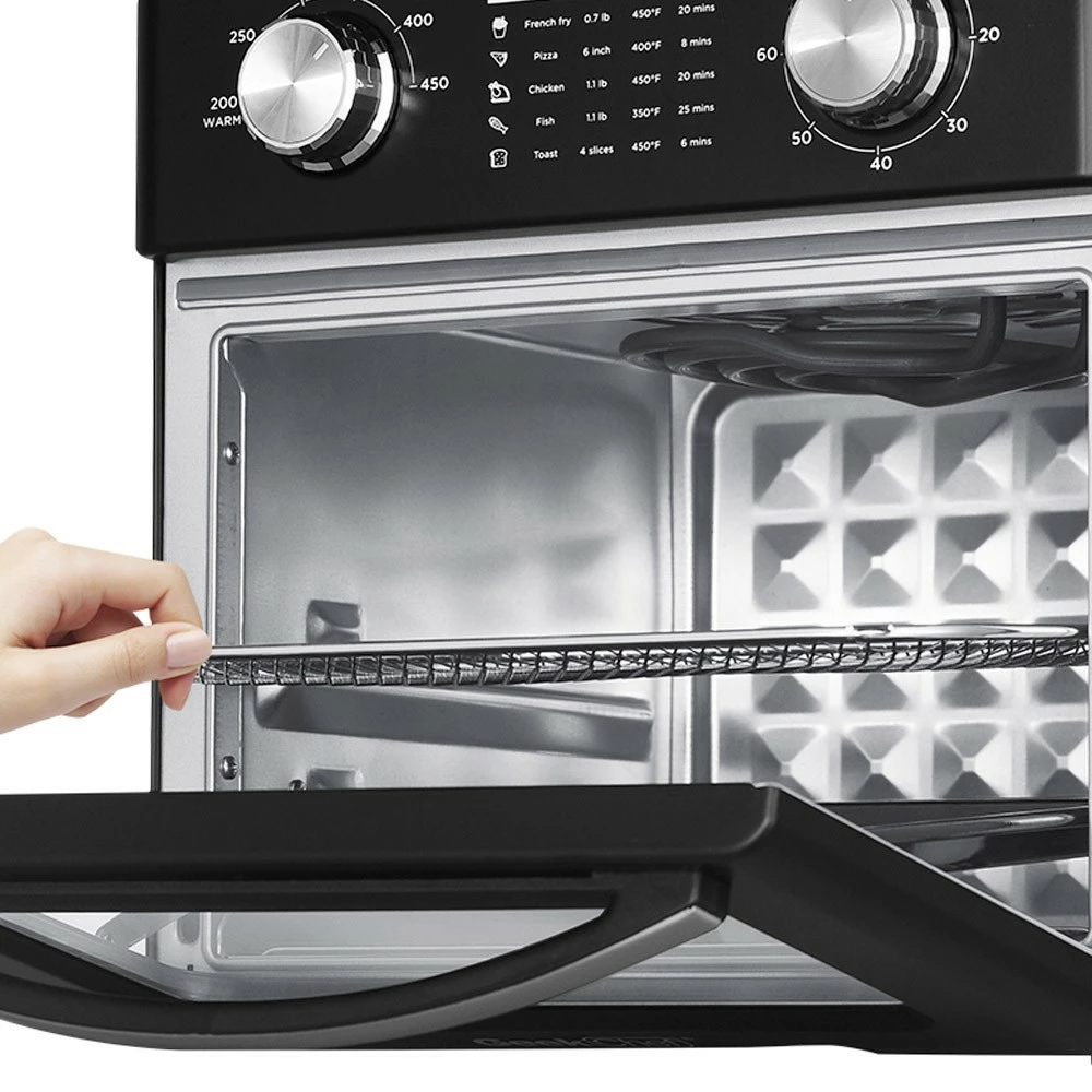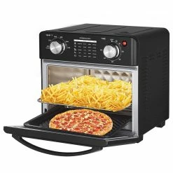10QT capacity and 2 rack levels allow you to prepare family-size meals for up to 1-3 people at once, can be easily placed on any kitchen counter, and can provide french fries for up to 0.7 pounds.