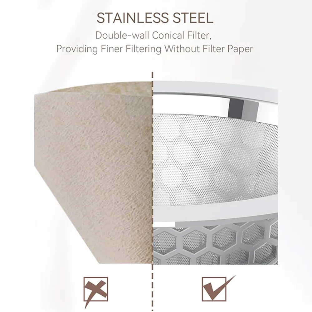 Using a stainless steel double conical filter, HiBREW H12 can provide you with a finer filter effect, allowing you to enjoy purer and more delicious coffee.