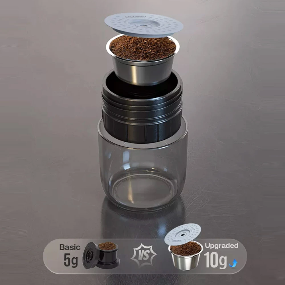 This coffee maker is equipped with 3 adapters: Nes capsule adapter, DG capsule adapter, and 10g stainless steel coffee powder adapter, so that you can always find one for your beverage.