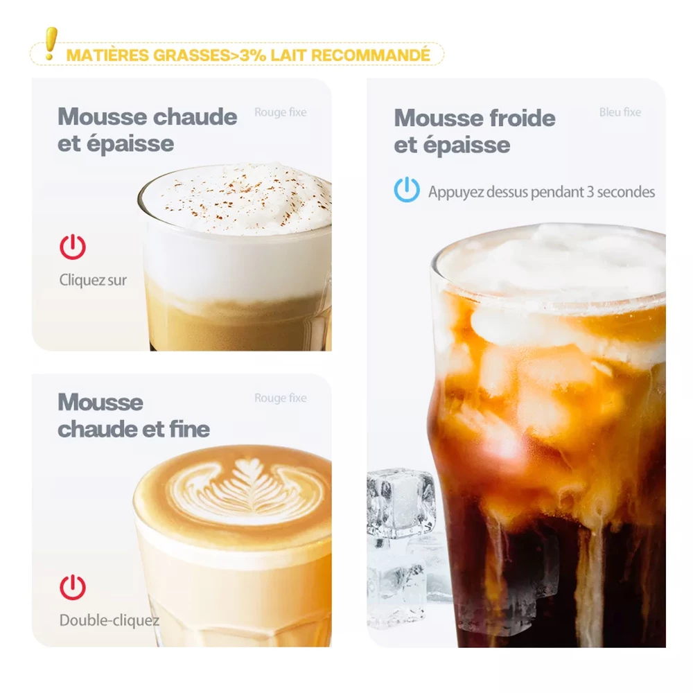 There is no need to change different whisk to make hot milk and milk froth, which is more convenient.