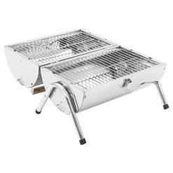 Would you like to start the barbecue season with an all-rounder? The portable tabletop charcoal BBQ grill is compact yet professional. It is designed with large double grill area and ideal for camping or picnics. This stainless steel camping grill is equipped with 2 chrome-plated cooking grids, providing ample space for grilling food. It also allows grilling with the lid open or closed. The portable grill is made of rust-resistant stainless steel with a polished finish and is easy to clean after use. The practical handle makes it easy to transport. The stainless steel barrel grill is easy to set up and dismantle.