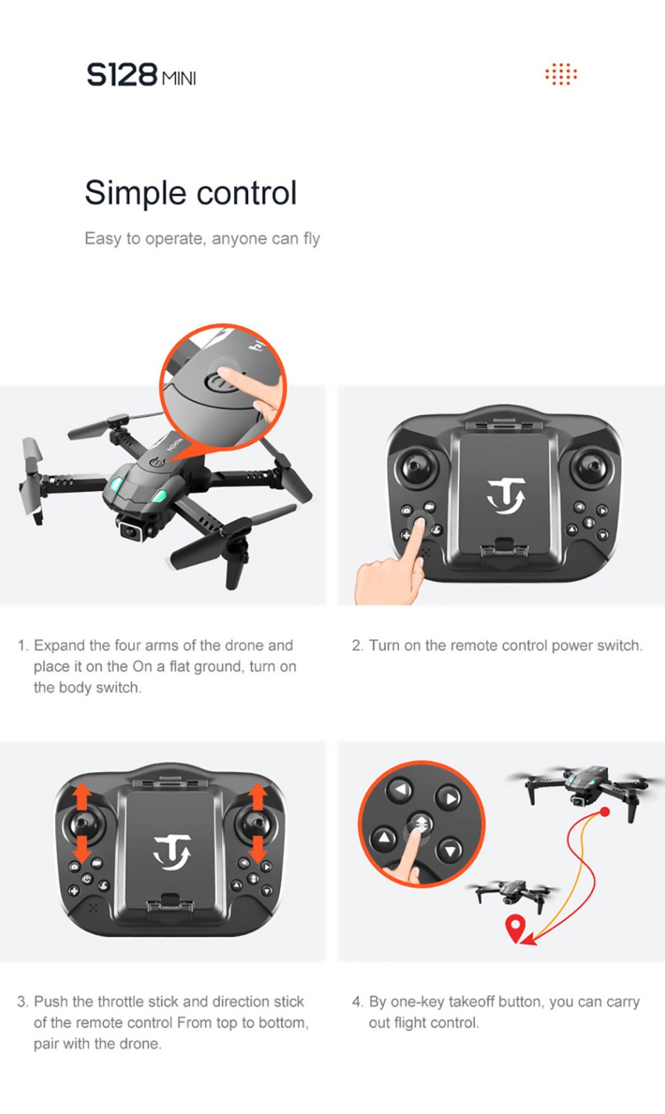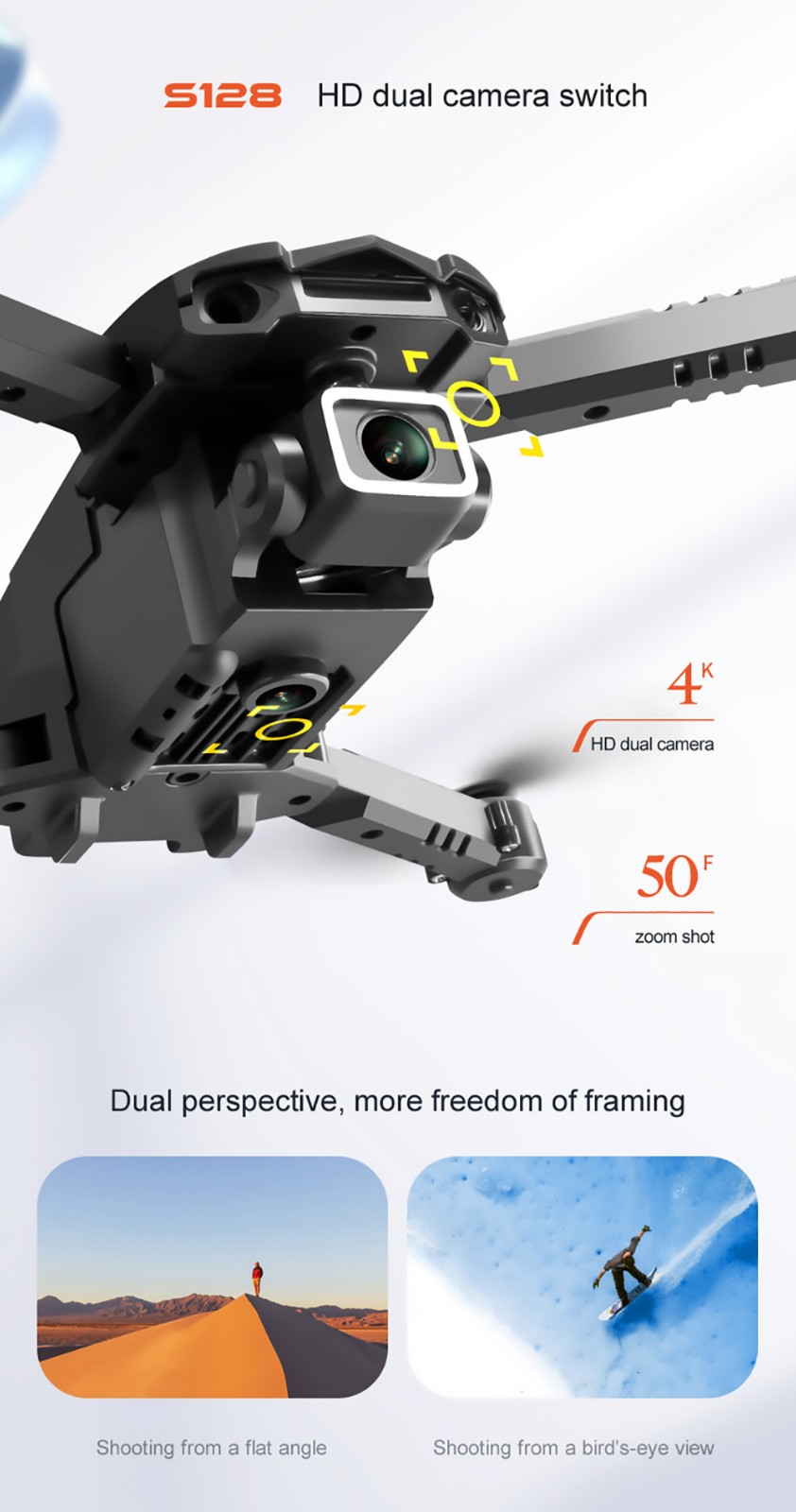 S128 Mini Drone 4K HD Camera FPV Three-sided Obstacle Avoidance Foldable Quadcopter Toy – 2 Batteries 1 Camera
