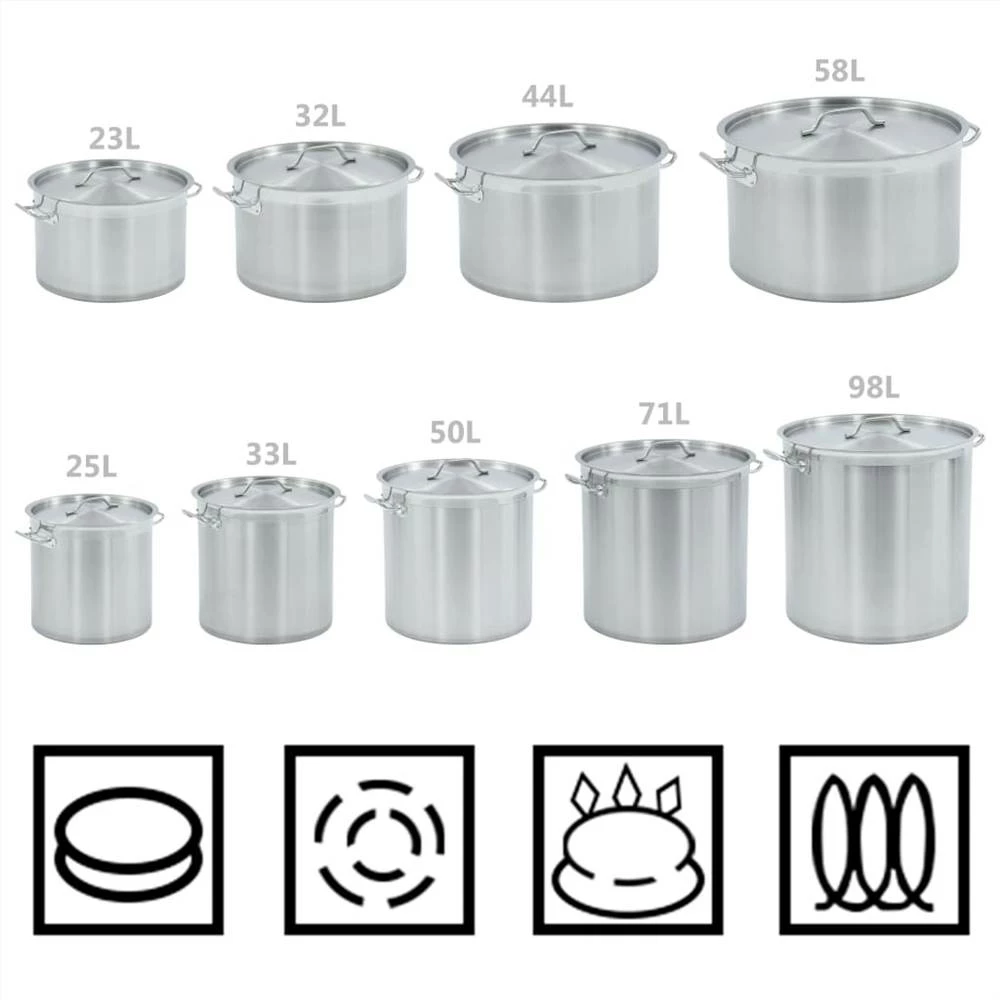 Made of premium stainless steel, this stock pot provides exceptional performance combined with durability and quality, which is truly a must-have in your kitchen! It can also serve in professional kitchen, hotel, restaurant catering. Great for soups, stews and sauces, this catering pot can deal with lots of kitchen works. The premium stainless steel material makes it suitable for induction and gas stoves. Additionally, its rolled edge and handles can avoid unexpected heating hurt. Let this stew pot be a great helper!