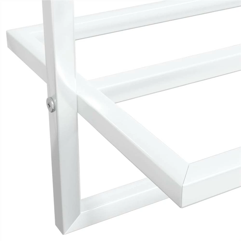 Maximise the space in your bathroom while adding stylish looks with this towel rack! Premium material: The iron frame of the towel holder ensures sturdiness and stability.Wall-mounted design: The towel hanger is wall-mounted to add extra storage space. That way, you can maximise your floor space and keep the area clean.Storage master: The wall rack, featuring a shelf, provides ample space for placing towels to help keep your bathroom clutter free.