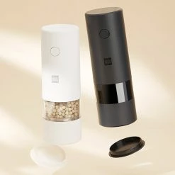 The grinders can be used with salt, pepper, peppercorns, and other spices.