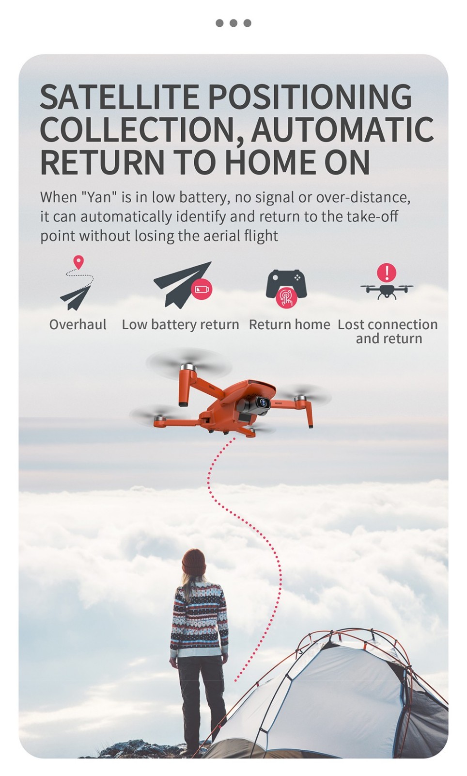 1. One-key GPS return to the take-off point, low battery return, no signal return.