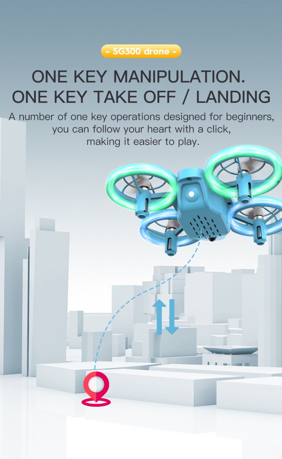 ZLL SG300 2.4G RC Drone 6-7 Min Flight Time One-key Take Off, Lights Switching, Headless Mode – Blue 1 Battery