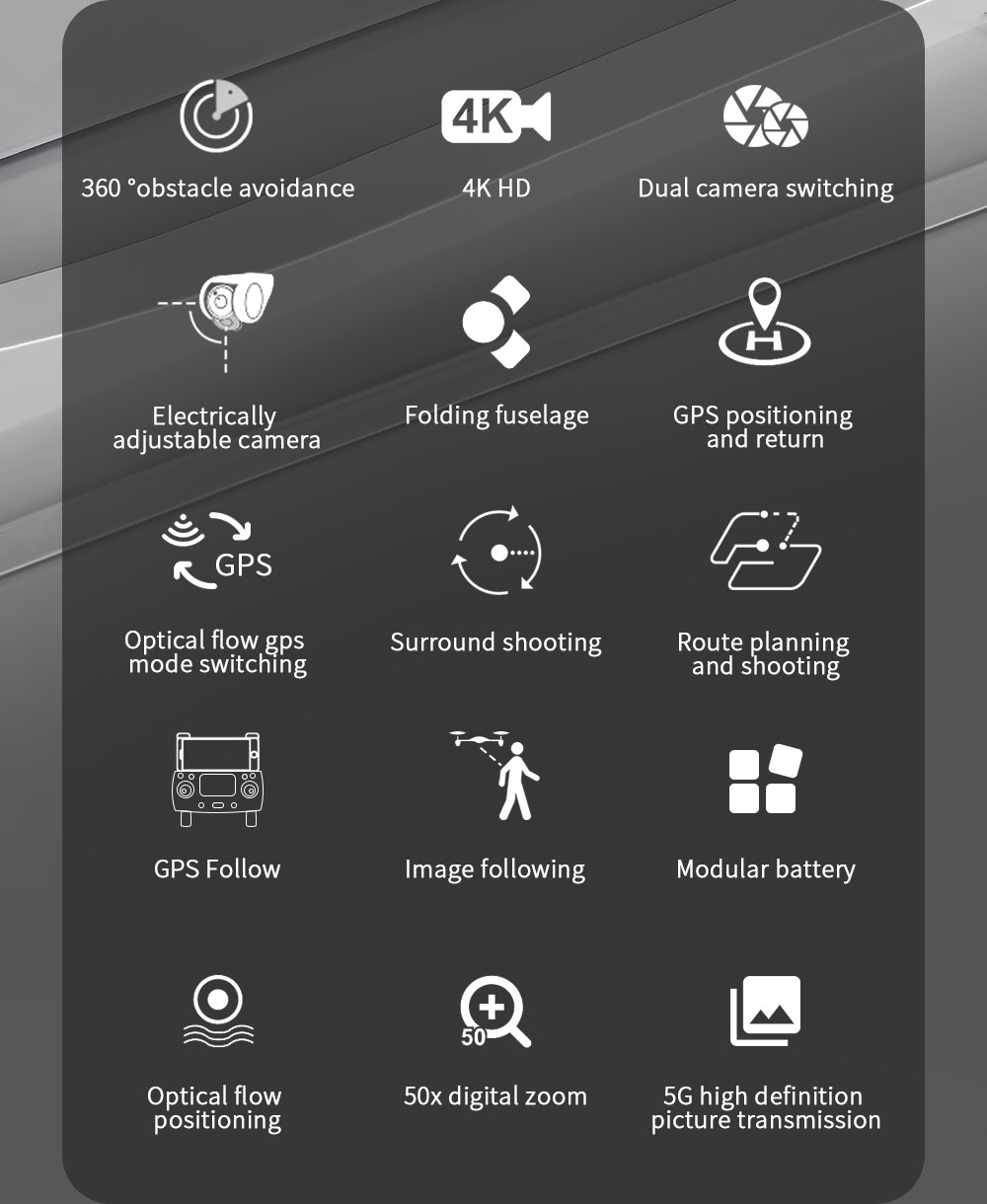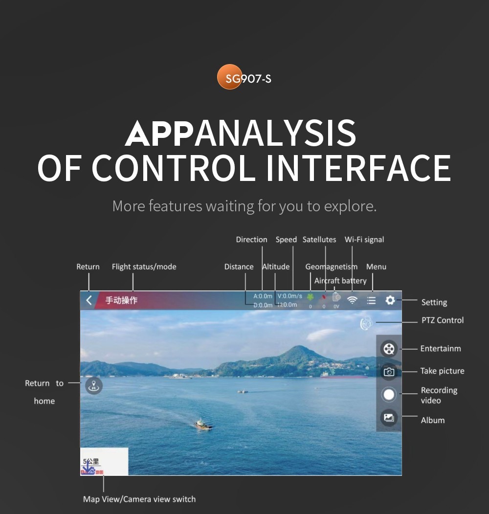 1. Smart return, one-key GPS return, low battery return, no signal return.